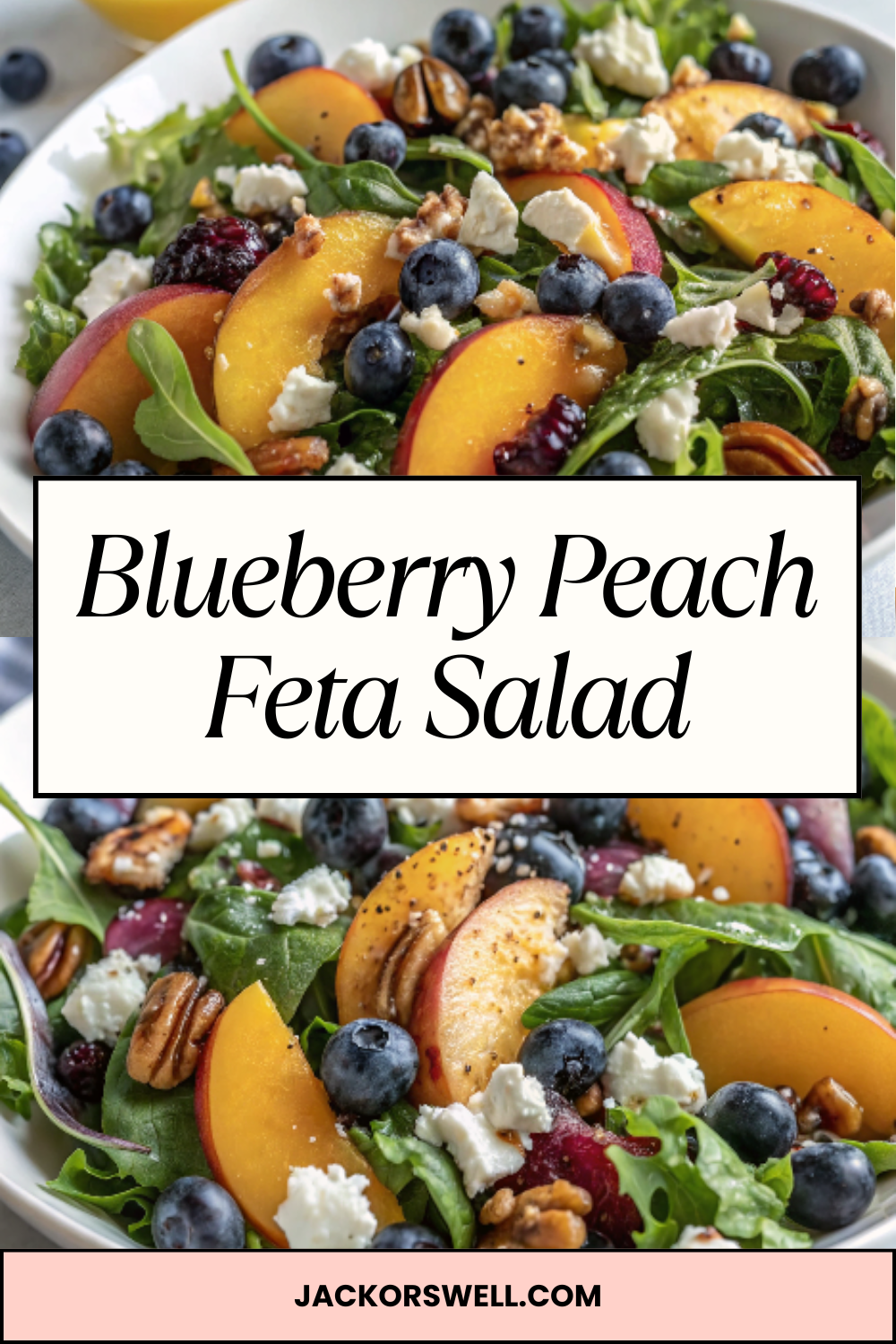 This Blueberry Peach Feta Salad is the essence of summer in a bowl โ€” sweet ripe peaches, plump blueberries, creamy feta, and crisp greens tossed in a bright honey-lime vinaigrette. Every bite is a perfect harmony of juicy fruit, tangy cheese, and refreshing herbs. Itโ€™s vibrant, elegant, and incredibly easy to make โ€” the kind of salad thatโ€™s beautiful enough for entertaining but simple enough for weekday lunches. Whether you serve it as a side at a BBQ or pair it with grilled chicken for a light meal, this dish delivers freshness and flavor in every forkful.