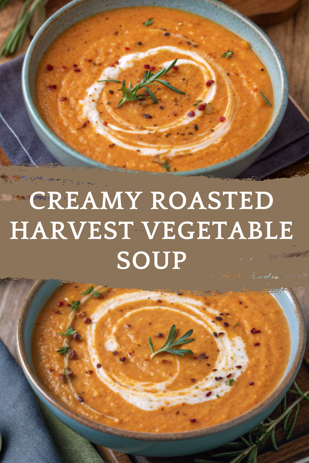 Creamy Roasted Harvest Vegetable Soup โ A velvety blend of caramelized veggies and warm, cozy flavor