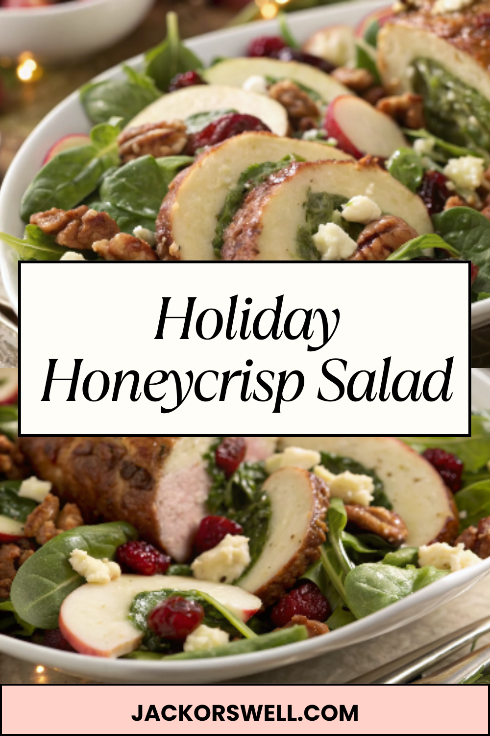 This Holiday Honeycrisp Salad is everything you want in a festive side dish โ€” crisp apples, crunchy nuts, sweet dried fruit, tangy feta, and a bright, cozy homemade dressing that ties it all together. Itโ€™s refreshing yet comforting, colorful yet elegant, and the perfect balance to rich holiday mains like turkey, ham, or beef. Honeycrisp apples bring unmatched sweetness and crunch, while pomegranate seeds and dried cranberries add sparkle and tartness. Toasted pecans or walnuts give warmth, and the maple-cinnamon dressing brings the cozy holiday glow. Perfect for Thanksgiving, Christmas dinner, potlucks, or winter gatherings, this salad is as beautiful as it is delicious.