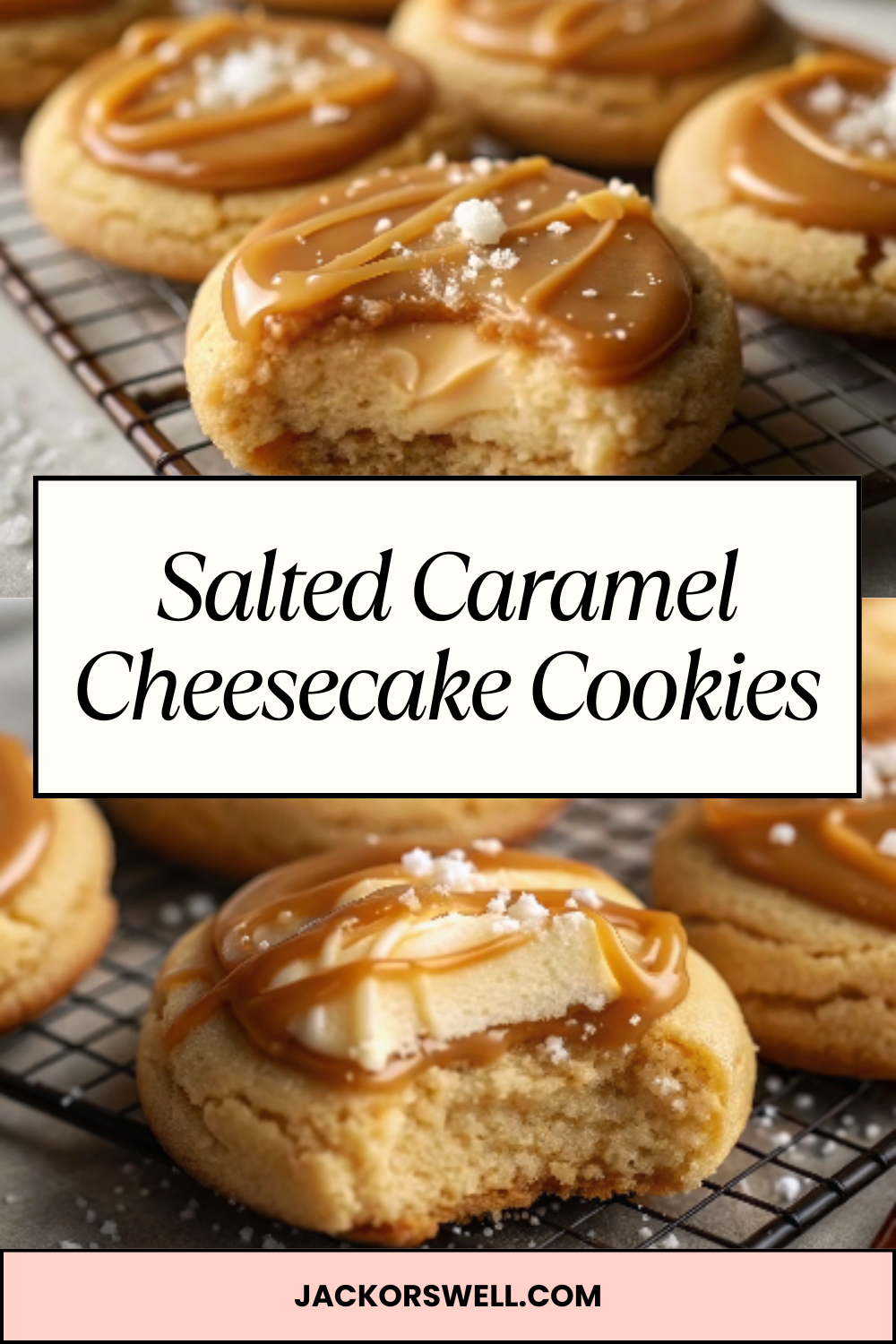 Each cookie is soft and chewy with a creamy cheesecake center, drizzled generously with golden caramel and finished with a sprinkle of sea salt. The combination of sweet and salty, creamy and crisp, makes these cookies pure indulgence β the kind that disappears off the cooling rack before theyβve even cooled.