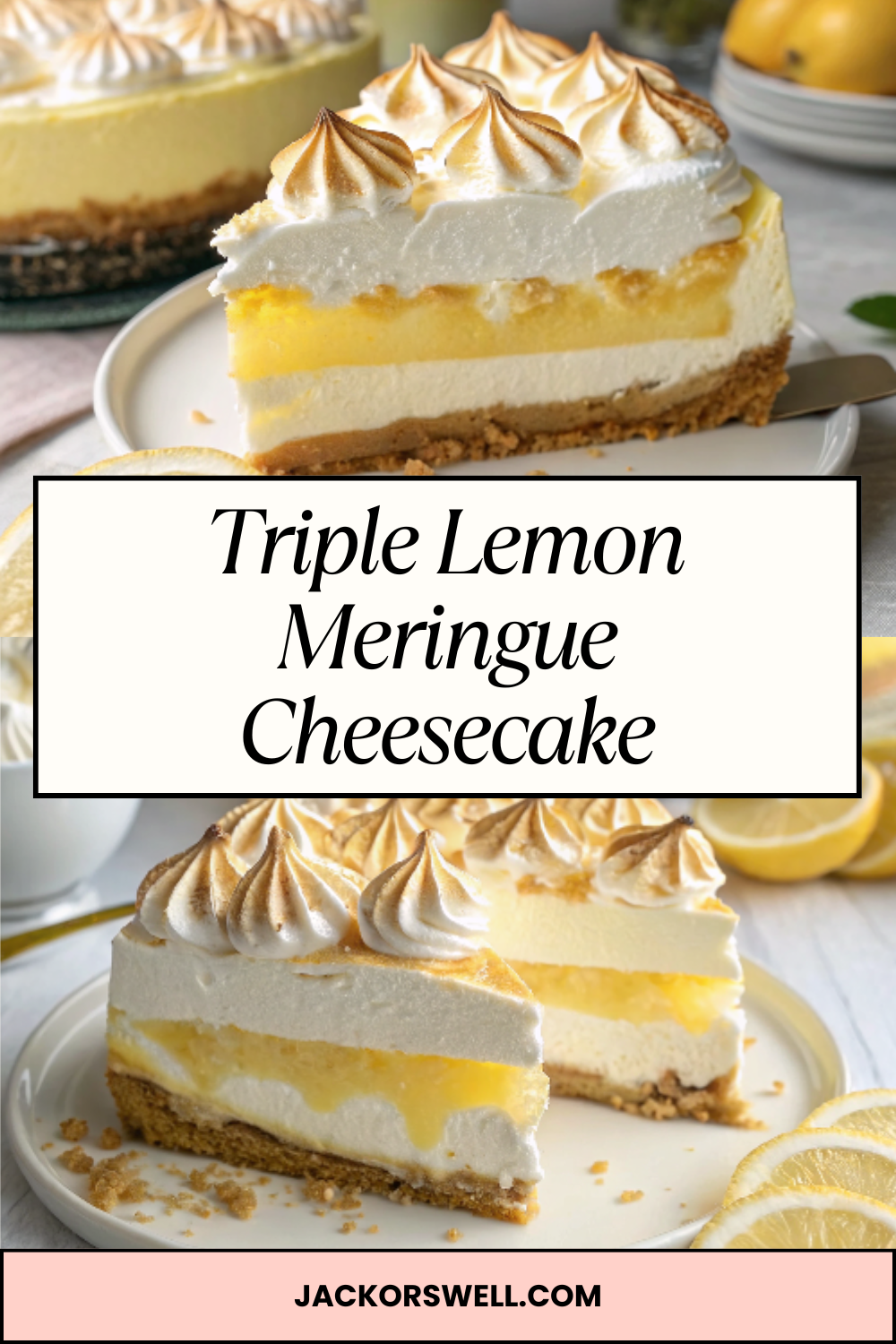 This Triple Lemon Meringue Cheesecake is the ultimate citrus lover’s dream — rich, creamy cheesecake infused with bright lemon flavor, layered with silky lemon curd, and finished with a light, toasted meringue topping that’s as elegant as it is irresistible.